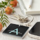 Black and Aqua Blue Teal Simple Script Monogram Name Keychain. This makes the perfect sweet 16 birthday, wedding, bridal shower, anniversary, baby shower or bachelorette party gift for someone that loves glam luxury and chic styles.