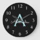 Aqua Teal Blue Script Girly Monogram Name Large Clock