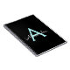 Black and Aqua Blue Teal Simple Script Monogram Name Spiral Notebook Planner. This makes the perfect sweet 16 birthday, wedding, bridal shower, anniversary, baby shower or bachelorette party gift for someone that loves glam luxury and chic styles.