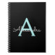 Aqua Teal Blue Script Girly Monogram Name Notebook
