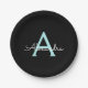 Aqua Teal Blue Script Girly Monogram Name Paper Plate