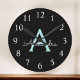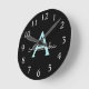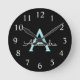 Aqua Teal Blue Script Girly Monogram Name Round Clock