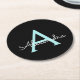 Aqua Teal Blue Script Girly Monogram Name Round Paper Coaster