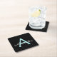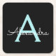 Aqua Teal Blue Script Girly Monogram Name Square Paper Coaster