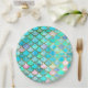 Aqua Teal Blue Watercolor Mermaid Scales Pattern Paper Plate