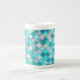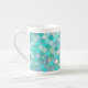 Aqua Teal Gold Oriental Moroccan Tile pattern Bone China Mug