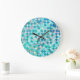 Aqua Teal Gold Oriental Moroccan Tile pattern Large Clock
