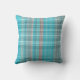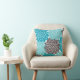 Aqua Teal Graphite Grey Flower Collage Plaid Back Cushion