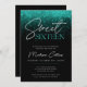This modern sweet 16 invitation features aqua teal sparkle lights and a trendy calligraphy script font on a black background. A perfect design for a glamourous sweet 16 birthday party celebration. Edit this sweet 16 invitation template yourself using the online editing tools.
