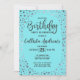 Aqua Teal Silver Glitter Confetti Border Birthday Invitation