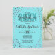 Aqua Teal Silver Glitter Confetti Graduation Invitation