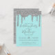 Aqua Teal Silver Sparkle Glitter Drips Birthday Invitation