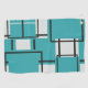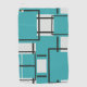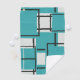 A simple, modern digital graphic design of intersecting lines that create a unique pattern in off white and a tropical aquamarine blue green colour.
