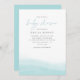 Elegant coastal baby shower invitation features a sheer sea aqua blue-green watercolor gradient along the bottom with a graceful curve that evokes the ebb and flow of the sea. Your baby shower details appear in minimalist classic lettering with handwritten script accents.