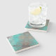Cool abstract limestone coaster in an aqua, turquoise teal and grey colour