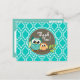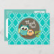 Aqua Turquoise Retro Owls Baby Shower Postcard