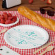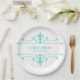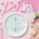 Simple and elegant Fancy Ornamental Wedding Paper Plates in turquoise and white featuring a sophisticated art deco style ornamental flourish border. Easy to customise, simply add your wedding details in the text fields provided. Click "Customise It" to find more personalisation options.