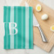 Aqua Victorian Stripe with Monogram Tea Towel