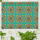 Aqua Victorian Tile Design Tea Towel