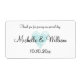 Custom turquoise blue watercolor heart wedding wine or water bottle labels. Personalised elegant waterbottle sticker template with weathered vintage heart. Stylish script typography for names of bride and groom and thank you message. Use as classy table decoration or thank you favour for guests at the party. Includes name or monogram plus date of marriage. Romantic country chic design with rustic print. Also good for beach theme weddings. Water colour painting.