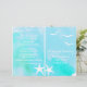 Modern abstract aqua blue watercolor splash with starfish and seagulls beach wedding ceremony and party program featuring a hand painted watercolor paint splash with texture in tones of aqua blue and turquoise, two starfish and seagulls in white and text in white. This elegant and stylish casual wedding design is a completely customisable template perfect for your summer beach or destination wedding. Note that this is only an image of watercolor and not real texture. You will have to fold it in the centre. Choose only this type of paper-value as it folds well. Note that this is only an image of watercolor and not real texture.