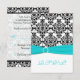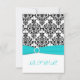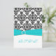 This black and white damask RSVP card has an aqua blue PRINTED ribbon and PRINTED diamond jewel brooch that would be perfect for an aqua and black themed wedding. Everything will print as you see it on your monitor. I will not see your invitation, and Zazzle will NOT correct anything (typos, misalignment etc.). The text and paper is all customisable. ****PLEASE NOTE that the small RSVP card (3.5”x5.0”) is the ONLY card that will fit in the envelope for the 5.25” square invitation, if applicable. If you need help with this invitation, please email me BEFORE you place your order. If you require any other matching items, please email your request to niteowlstudio@gmail.com.