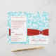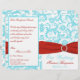 Aqua, White, and Red Damask Wedding Program