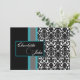 Aqua White Black Damask Wedding Invitations