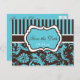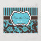 Aqua, White, Brown Damask Save the Date Card