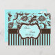 This aqua blue, brown, and white stripes with floral damask save the date postcard matches the wedding invitation shown below. If you require any additional matching items, please email your request to niteowlstudio@gmail.com.
