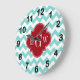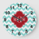 Aqua White Chevron Cranberry Quatrefoil 3 Monogram Large Clock