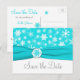 Aqua, White, Grey Snowflakes Save the Date Card