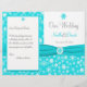 This 8.5"x11" turquoise and white snowflakes wedding program has an aqua blue FAUX ribbon and snowflake medallion on it. It matches the wedding invitation and other items shown below. It is designed to be folded down the centre. All the text is customisable. ****PLEASE NOTE that the higher grade paper is a card stock and does not fold well. Email niteowlstudio@gmail.com if you need any assistance with the customisation of this, or if you have any questions or requests.