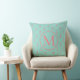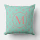 Aqua With Coral Pink Anchors Monogram Cushion