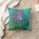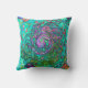 Aquamarine Groovy Abstract Retro Liquid Swirl Cushion