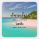 Candle, soap, or kitchen product stickers with a beautiful photograph. A scenic tropical beach with aquamarine water and a white sandy beach with a lush forest in the back. A solitary umbrella available for those who love seclusion.
