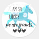 This sweet friendship sticker is a perfect accessory for birthday parties, birthday invitations, or thank you party favours. This turquoise, black, & white pony label is easily personalised and the text and graphic can be positioned to your liking. Great for any pony, miniature horse, or equestrian themed parties or gifts.