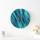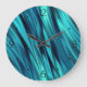 A vibrant pattern in shades of light to deep turquoise and cobalt blue curved wavy stripes, like rippling waves in a tropical sea or moving water, with darker shading for a silky look. Please note: this is not satin fabric but a printed design.