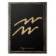 Stylised hammered gold Aquarius astrology zodiac birthday symbol in a hand drawn gold double line frame. This notebook or dream journal or writing pad has Aquarius text in a fine script, which can be personalised to narrate your own story.