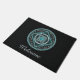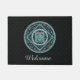 This mandala was designed for the zodiac sign, Aquarius, depicting a turquoise stone in the centre surrounded by elements representing the sign, such as the symbol for the sign, the constellation, and the alchemical symbol for Air, as well as filigree vines and weaves wrapping it all into a solid image in shades of turquoise, silver, and black. Customise the text on this doormat with your own preferred greeting or remove it entirely to make a unique decoration for your entryway.