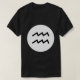 Aquarius symbol in black. NB This design can be customised the motif appears as a simple black symbol on light shirts, or as a black symbol in a white circle on dark shirts.