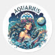 A fun horoscope sign Aquarius stickers with a pretty celestial illustration of a water bearer woman in front of stars and a full moon.