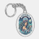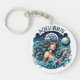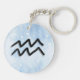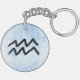 A fun horoscope sign Aquarius key chain with a pretty celestial illustration of a water bearer woman in front of stars and a full moon.