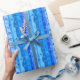Wiggly stripes and Aquarius zodiac symbols in shades of blue.