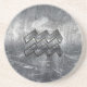 Aquarius Zodiac Symbol Distressed Silver Steel Coaster