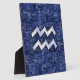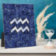 Aquarius Zodiac Symbol on blue digital camo decor Plaque