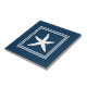 Aquatic themed design with starfish decoration in striped squares on blue background