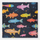 Aquatic Theme Swimming Fish Chalk Drawing Pattern Decor. Solutions for the interior decor.