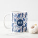 Ara Parrot Blue Drawing Tropical Leaf Pattern Monogram Mug. Ara pattern with tropical leaves in blue and pink colours. Digital hand-drawn illustration. Add your monogram.