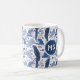 Ara Parrot Blue Tropical Leaf Pattern Monogram Coffee Mug